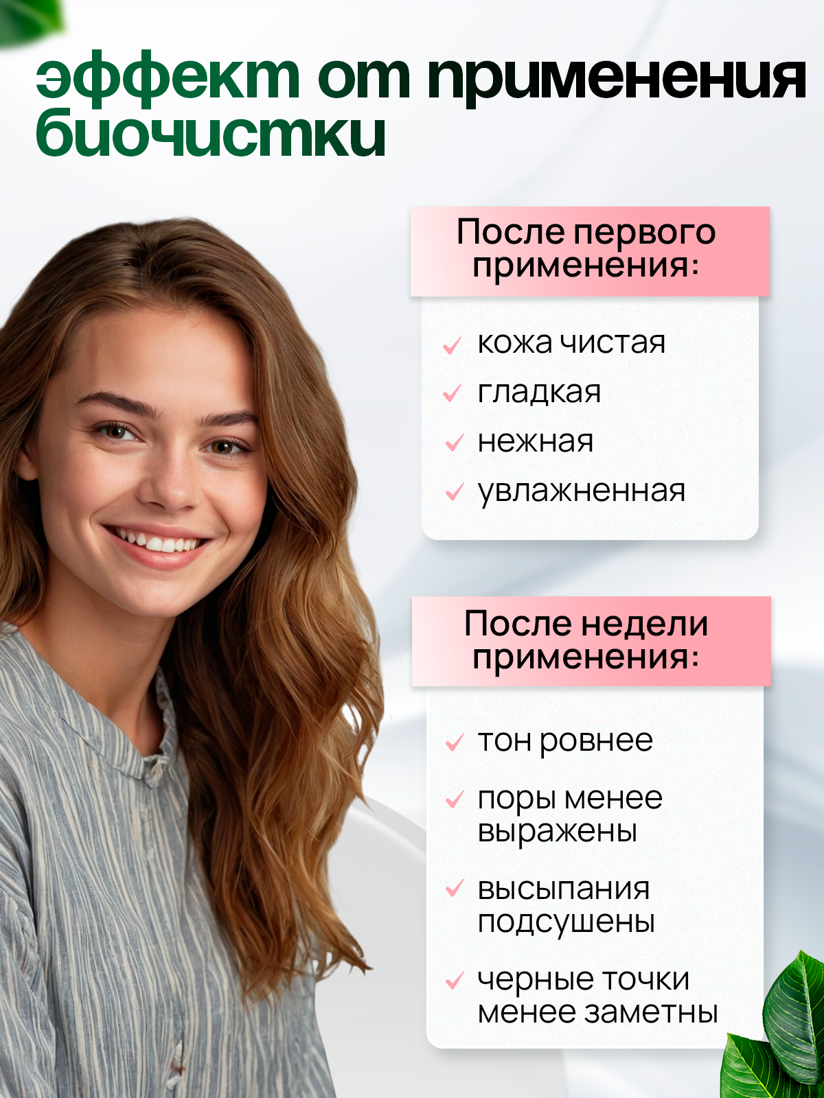 - равномерно нанести биочистку руками на всю поверхность лица,
