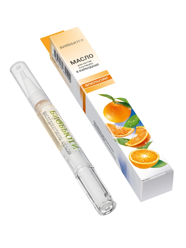 Натуральное масло для кутикулы «Апельсин» от БиоБьюти — это многофункциональный продукт. В его состав входят масла миндаля, жожоба и авокадо, а также витамины А и Е. Масло питает и защищает кутикулу от сухости, трещин и заусениц. На ногтях без лака карандаш работает как маска, укрепляя ногтевую пластину и предотвращает ее расслаивание. Ежедневное использование в течение нескольких недель делает кутикулу мягкой и ухоженной, которую больше не требуется обрезать. Масло обладает апельсиновым ароматом.